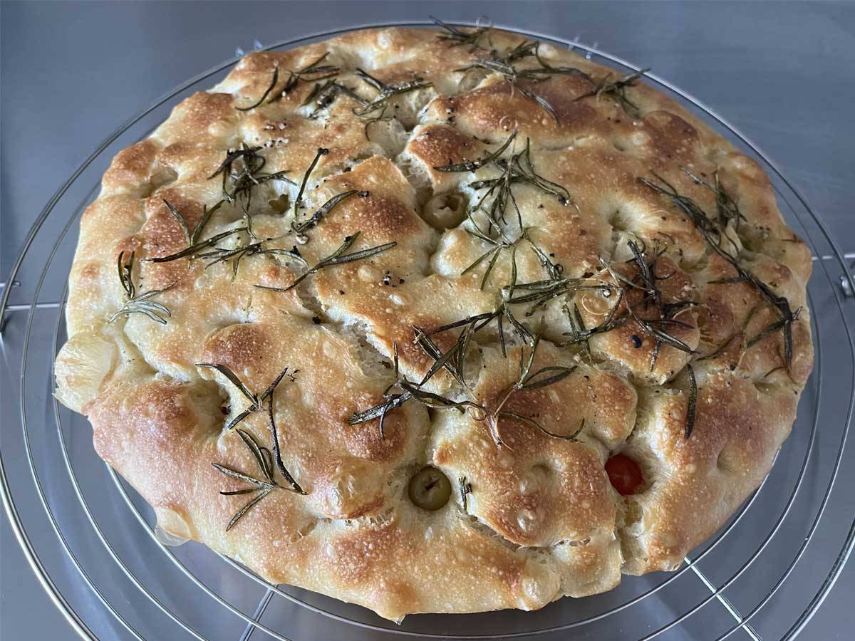 Meine Focaccia ist ein kleines Stück Mittelmeer in der Backstube. Der Teig wird mit bestem Bio-Olivenöl verfeinert, grobem Meersalz bestreut und mit frischem Rosmarin aus meinem Garten gebacken. Das Ergebnis: außen knusprig, innen fluffig und saftig. Ein Brot, das nach Urlaub schmeckt – nach Sonne, Meer und Lebensfreude. Ob als Beilage zum Grillen, als Snack unterwegs oder zu einem Glas Wein – Focaccia ist vielseitig, aromatisch und einfach köstlich.