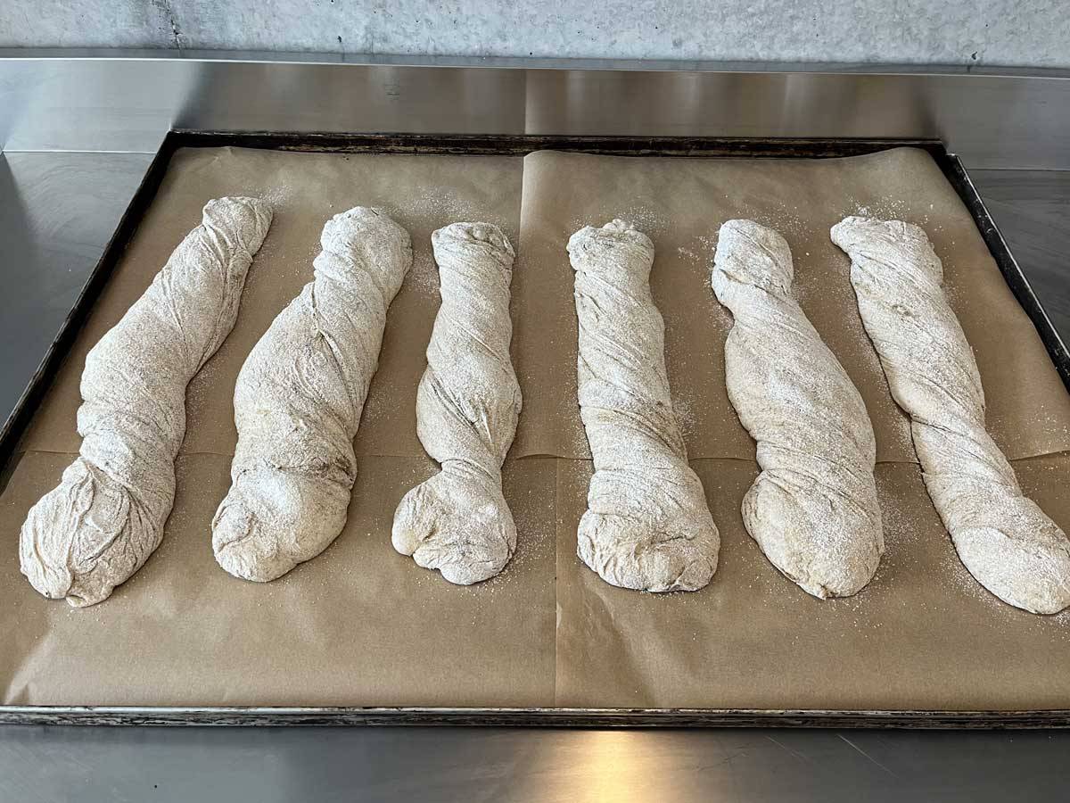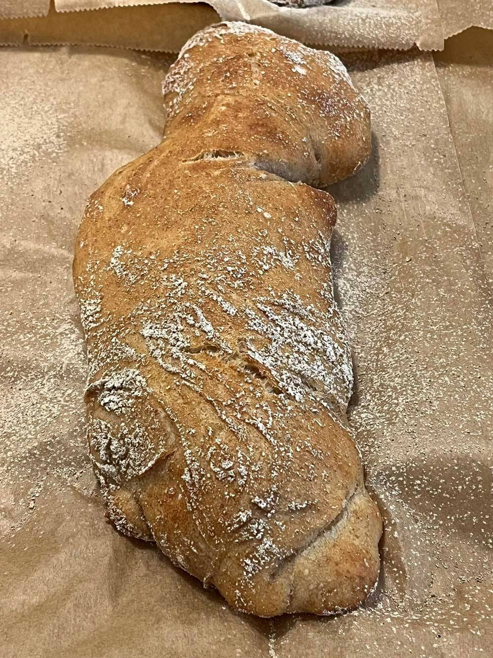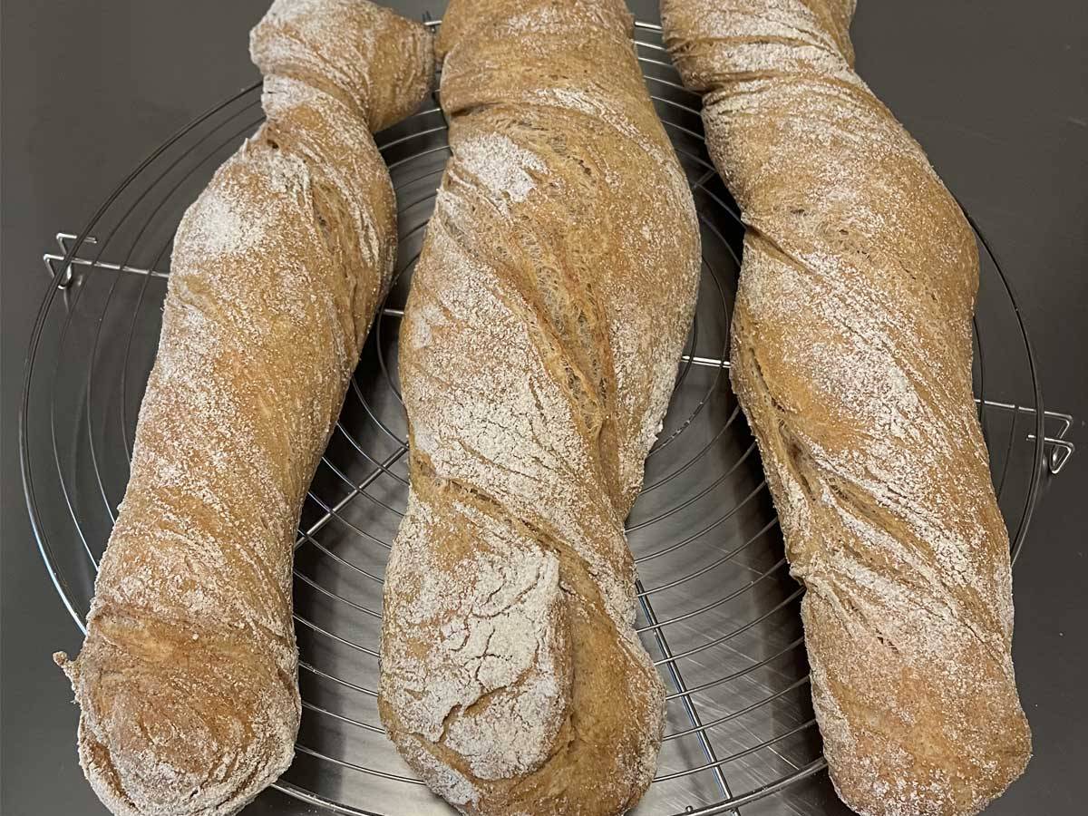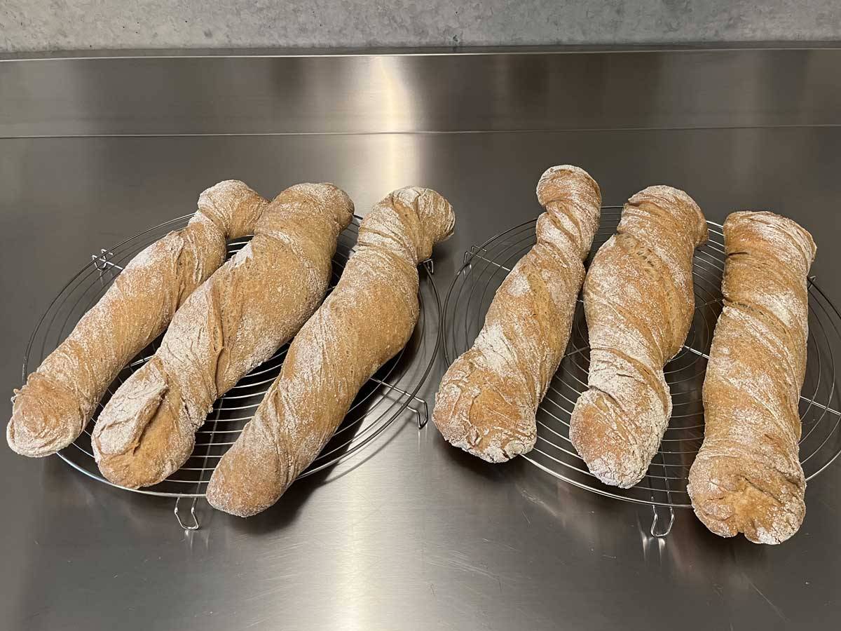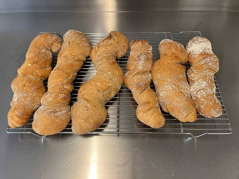 Das Wurzelbrot ist ein Brot mit Charakter. Von Hand gedreht, bekommt es seine unverwechselbare Form – rustikal, leicht verschlungen und voller Spannung. Beim Backen entsteht außen eine knusprige Kruste, während das Innere weich, aromatisch und luftig bleibt. Es ist ein Brot, das zu vielen Gelegenheiten passt: zu einem Glas Rotwein, zu Käse, zu Suppen oder einfach als Begleiter für den Alltag. Ein Wurzelbrot ist nie gleich – jedes ist ein kleines Unikat aus der Backstube.